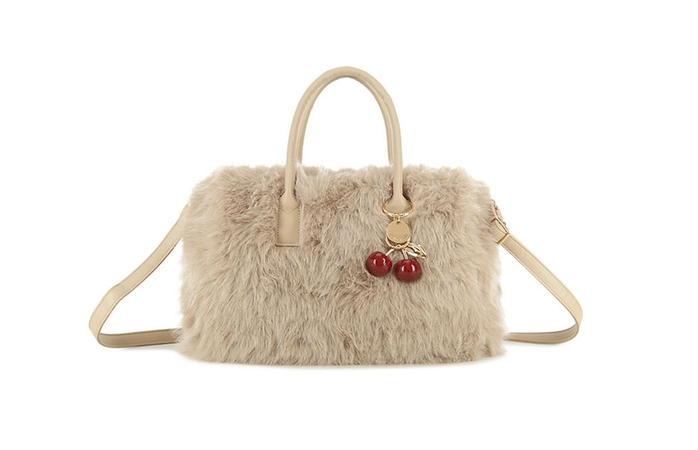Leopard/Black Faux Fur Bag w Cherry Charm