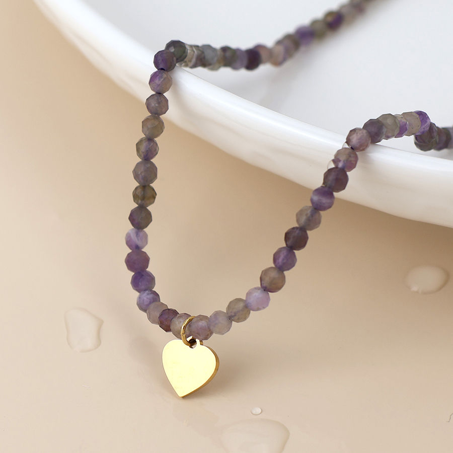 Waterproof Gold Plated Heart & Indigo Bead Necklace