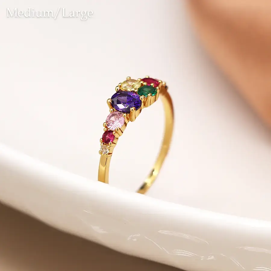 Golden multi colour crystal ring