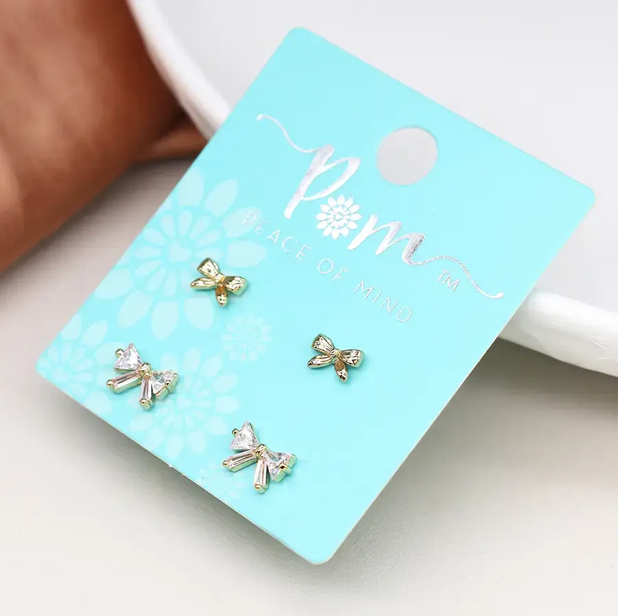 Faux gold bows and crystal bows double stud earring set
