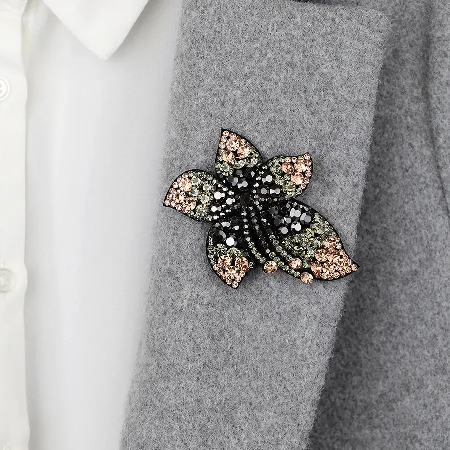 Peach mix crystal floral brooch